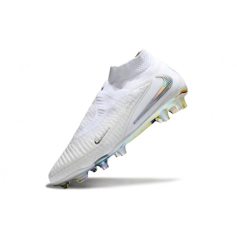 Nike Phantom 6 High-cut asymmetric Flyknit collar with offset seams offers comfortable support while minimising risk of irritation; Ghost Lace system hides the laces.